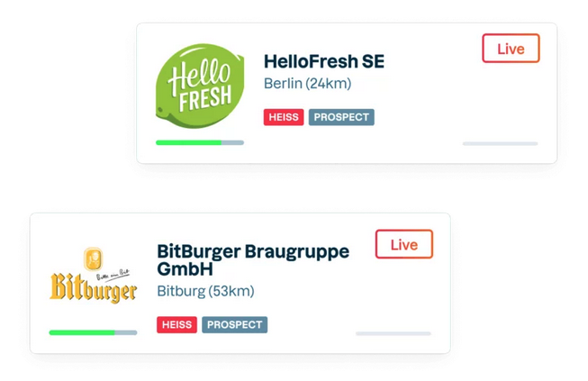 Live-Besucher werden durch eine besondere Kennzeichnung hervorgehoben. Je nach Vertriebsstrategie macht es oft Sinn in diesem Moment aktiv zu werden und das Unternehmen zu kontaktieren.